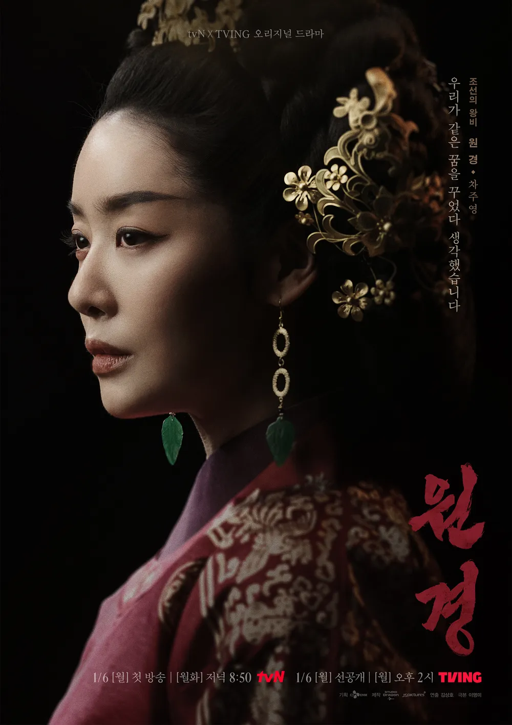 2025년 1월 6일부터 방송 및 공개 예정인 tvN 월화 드라마이자 TIVING 오리지널 드라마 <원경> 입니다. 드라마 원경은 1월 6일을 시작으로 매주 월요일과 화요일 오후 8시 50분에 방송되고, 매주 월요일 오후 2시 티빙을 통해 공개돼요. tvN 방송 버전은 15세 관람가, 티빙 공개 버전은 청소년 관람 불가라고 하니 이점 참고하여 시청해주시기 바랍니다.