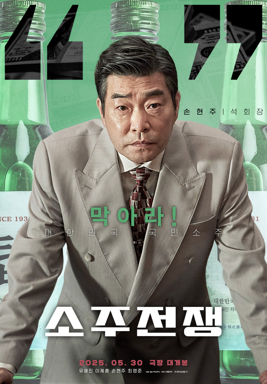 2025년 5월 30일에 개봉 예정인 한국 영화 <소주전쟁>입니다. 영화 소주전쟁은 TMF 외환위기를 눈여겨보던 글로벌 투자사 솔퀸의 직원 인범이, 국보 소주 매각을 위해 회사에 접근하게 되면서 벌어지는 이야기를 담은 영화라고 하는데요. 국보 소주가 자신의 인생이나 마찬가지인 국보그룹의 재무이사 종록은 회사를 살리기 위해 인범에게 의지를 하게 되고, 서로 다른 목적의 두 사람이 소주 하나로 가까워지는 내용이라고 하네요!