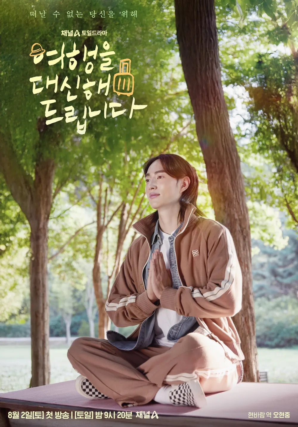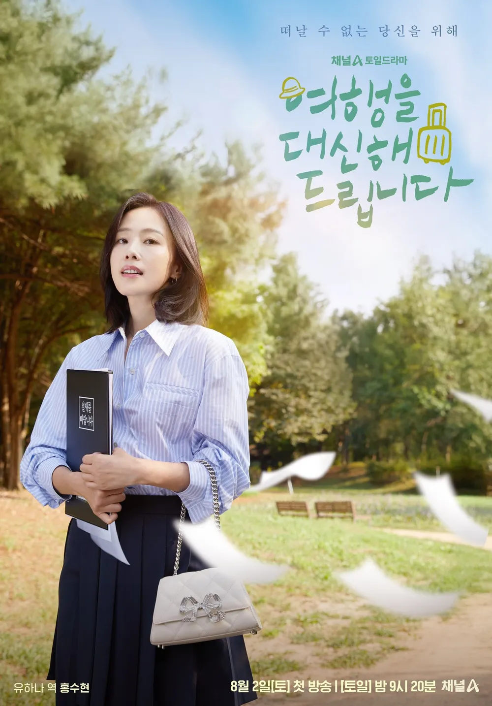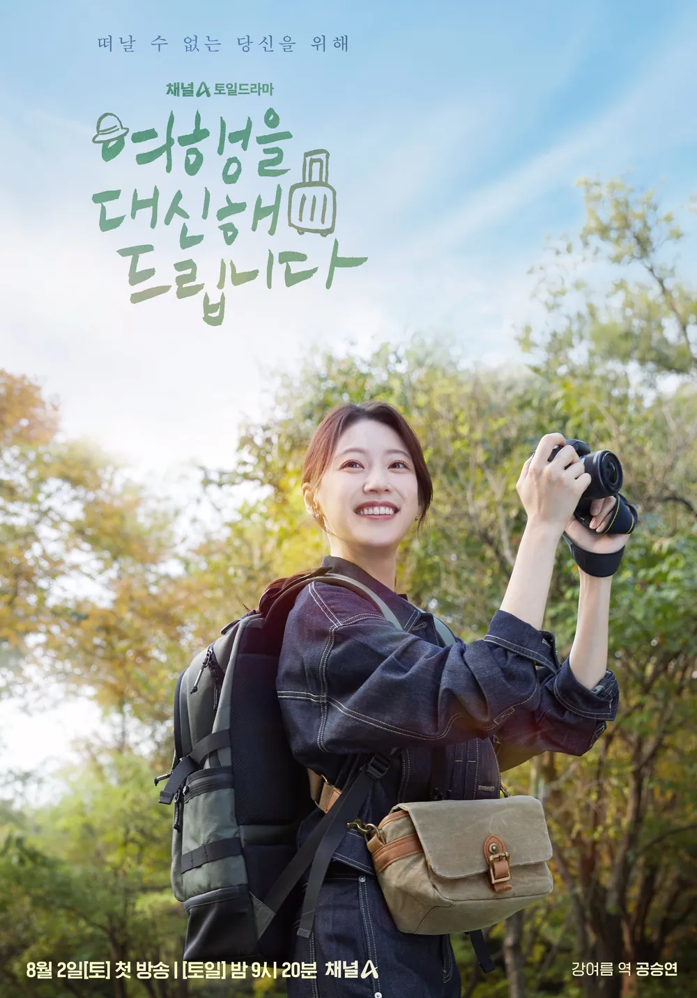 2025년 8월2일부터 방송 예정인 채널A 토일 드라마 <여행을 대신해 드립니다>입니다. 드라마 여행을 대신해 드립니다는 일본의 동명 소설이 원작이며 공승연, 김재영, 유준상, 홍수현, 오현종 배우가 출연하는 것으로 알려져 있어요. 8월 2일을 시작으로 8월 31일까지 방영될 예정이며, 매주 토요일과 일요일 오후 9시 10분 채널A에서 만나보실 수 있습니다. 드라마 여행을 대신해 드립니다 다시 보기는 OTT 웨이브, 넷플릭스에서 가능하다고 하니 참고해 주세요!