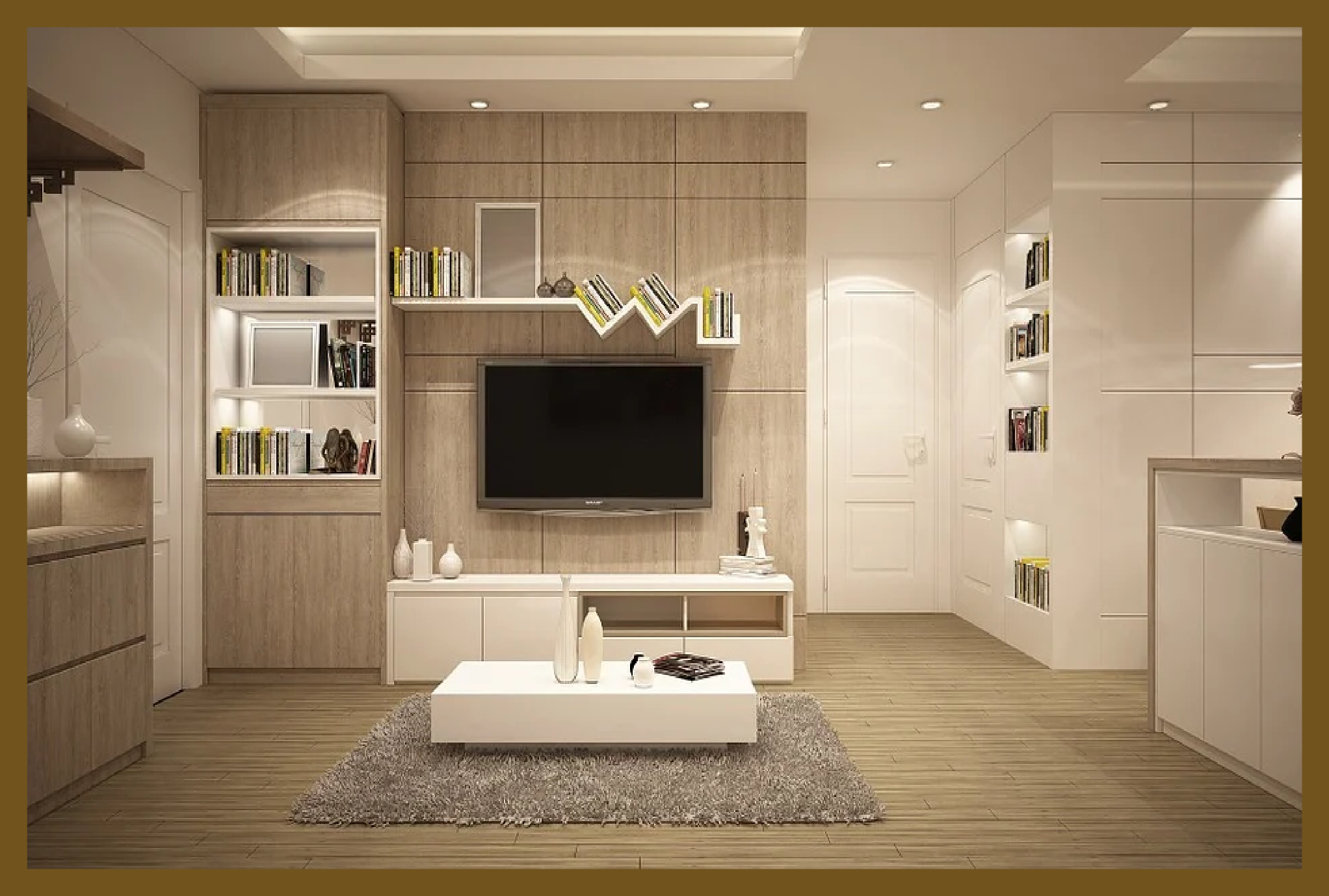 따로 무언가를 하는 것이 부담스러우시다면, 쓰지 않는 벽을 활용하여 인테리어를 하시는 방법도 있습니다. 장식장 또는 책꽂이를 설치해주신 후, 취향에 맞는 물건을 올려놔주세요. 어떤 물건을 올려놓느냐에 따라 집 안의 분위기도 달라지기 때문에 개성을 살리기 좋고, 나중에 이사를 하더라도 따로 원상복구를 해놓을 것이 없어 간편합니다.