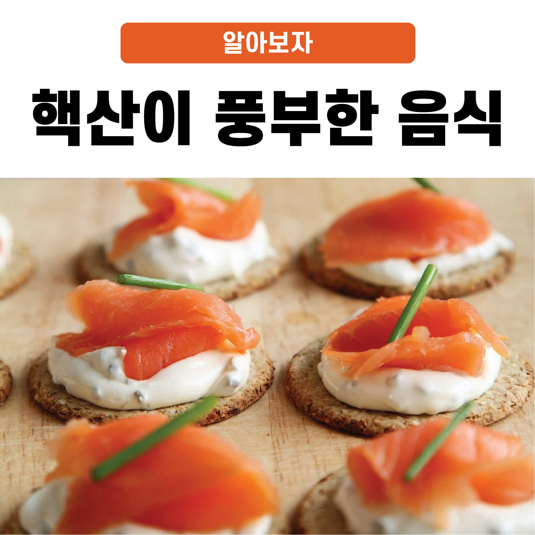 핵산이 풍부한 음식 첫 번째는 연어입니다. 연어에는 핵산이 풍부하기 때문에, 일주일에 한두 번 챙겨 먹는 것만으로도 필요한 핵산의 양을 충족시킬 수 있습니다. 뿐만 아니라 비타민 D와 마그네슘이 풍부하여 성장기 어린이들과 노인들의 뼈 건강에도 좋습니다.