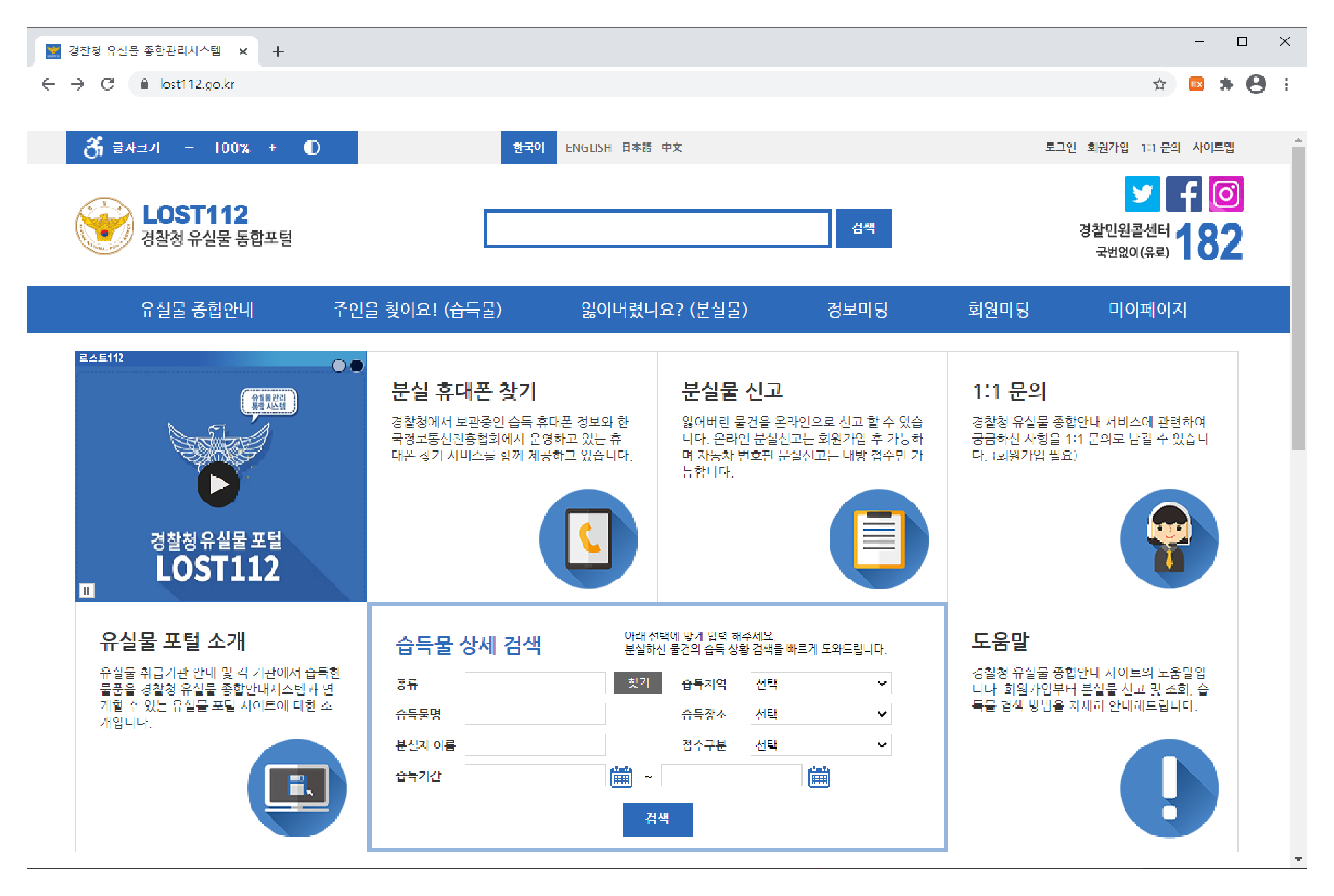 지갑 잃어버렸을때, 지갑을 찾지 못했다면 누군가가 자신의 지갑을 줍진 않았는지 찾아볼 수 있습니다. 경찰청 유실물 통합포털 홈페이지 (www.lost112.go.kr)에 들어가시면 '습득물 상세 검색'을 하실 수 있습니다. 당장 없더라도 최소 며칠 동안은 계속 들어가 보시는 것을 추천드립니다.