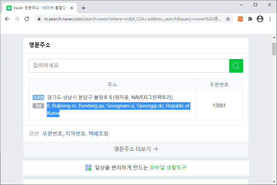 영문 주소뿐만 아니라 우편번호도 있습니다. 이제는 영문주소 변환기 사용방법을 알았으니, 영문주소를 작성해야 하는 상황이 오더라도 당황하지 않을 것 같습니다. 지금까지 영문주소 변환기 사용 방법이었습니다.
