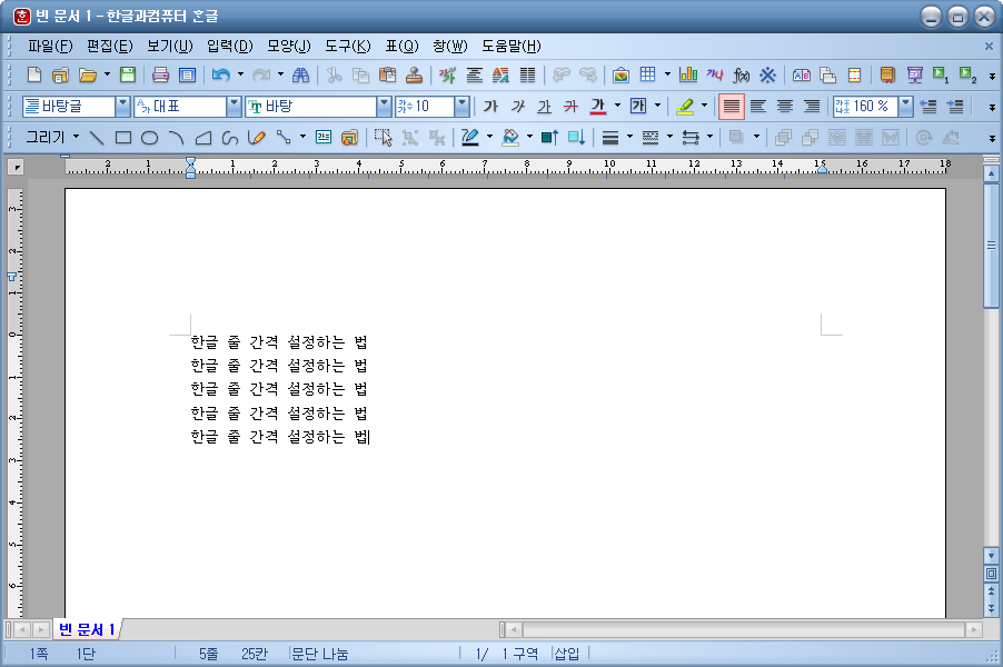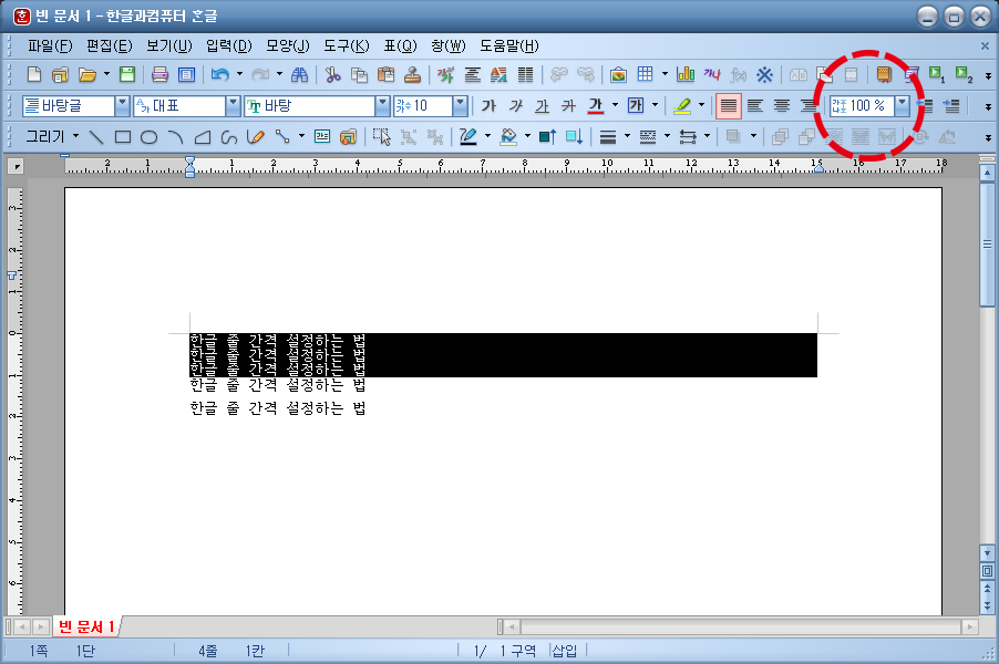 이번에는 100%로 줄 간격을 설정했을 때의 모습입니다. 눈에 띄게 줄 간격이 좁아졌습니다.