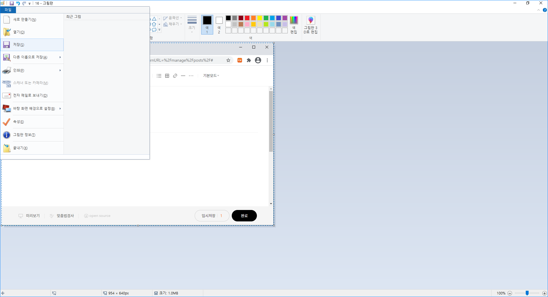 그림판이 정상적으로 실행되었다면, 키보드 단축키 Ctrl + V를 눌러주어 노트북 화면 캡처한 이미지를 붙여 넣기 합니다.