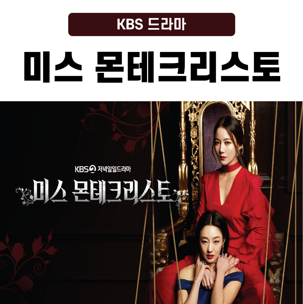 요즘 선풍적인 인기를 끌고 있는 KBS2 드라마 미스 몬테크리스토입니다. 월요일 ~ 금요일 저녁 7시 50분에 방영되고 있습니다. 줄거리를 요약하자면 '믿었던 친구들에게 죽음까지 내몰렸던 한 여인이 복수를 다짐하고 돌아와 송두리째 빼앗긴 인생을 되찾는 드라마'입니다.