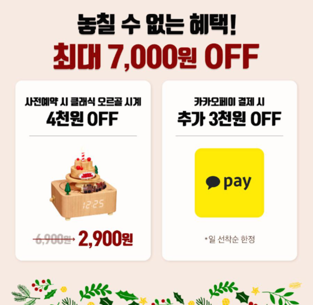 베스킨라빈스 오르골시계는 원래 6,900원이지만 사전 예약을