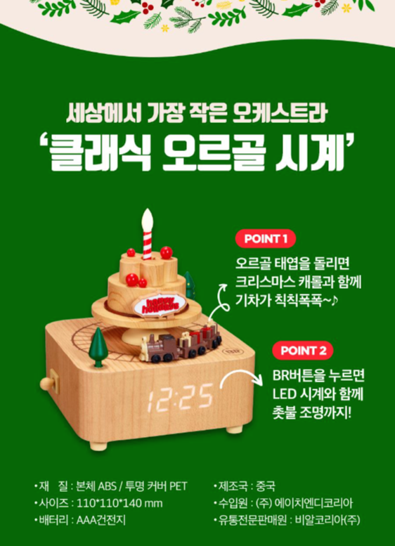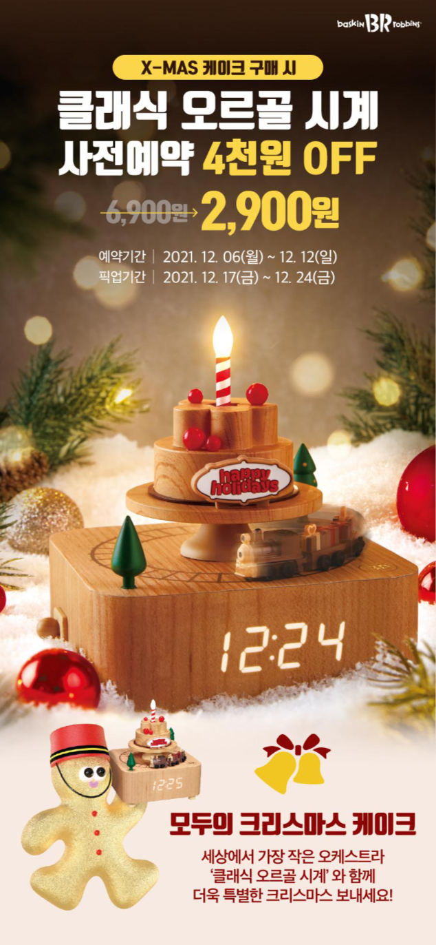 크리스마스 베스킨라빈스 오르골시계는 귀여운 디자인이