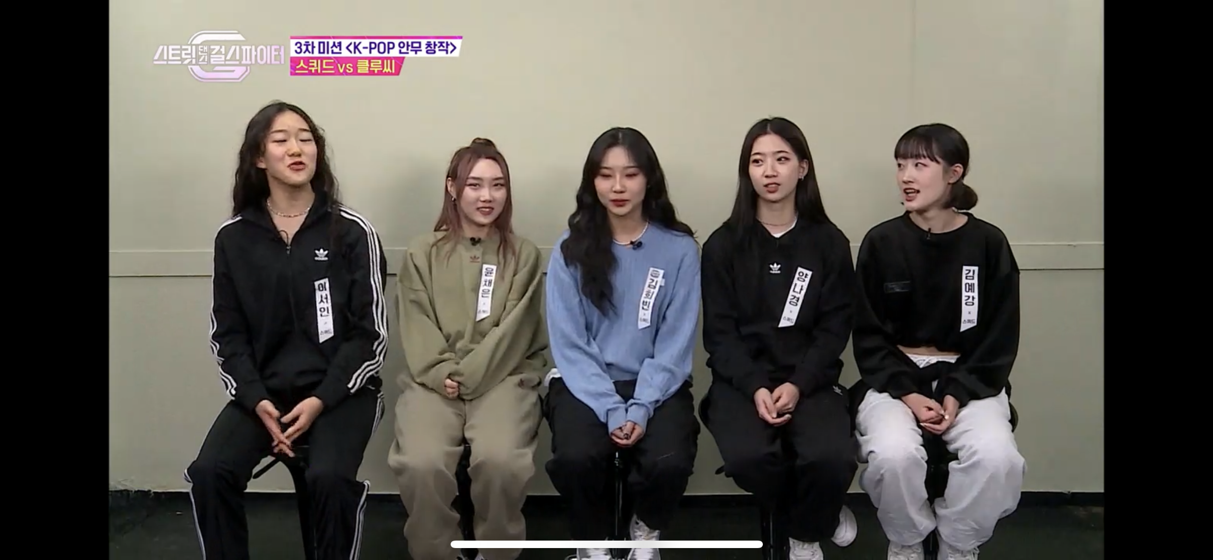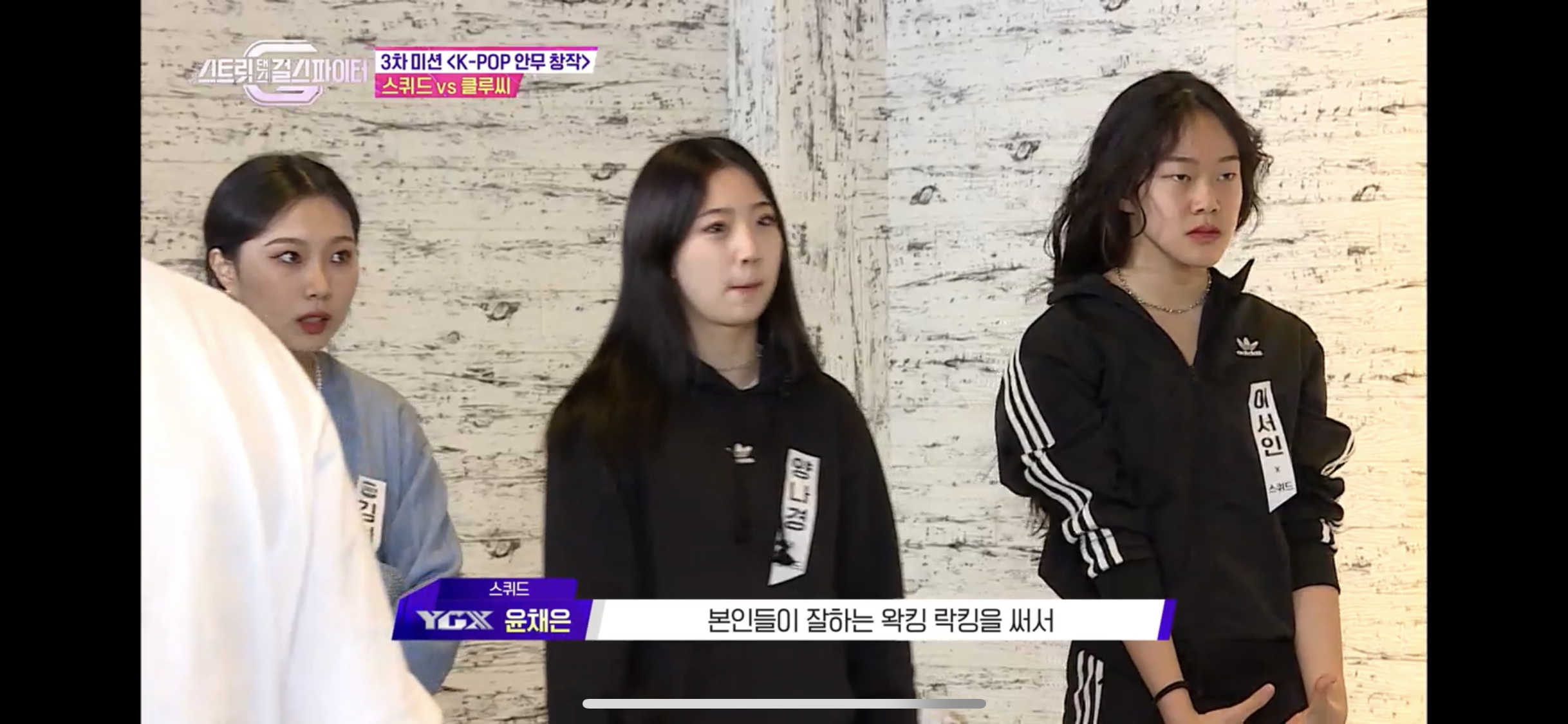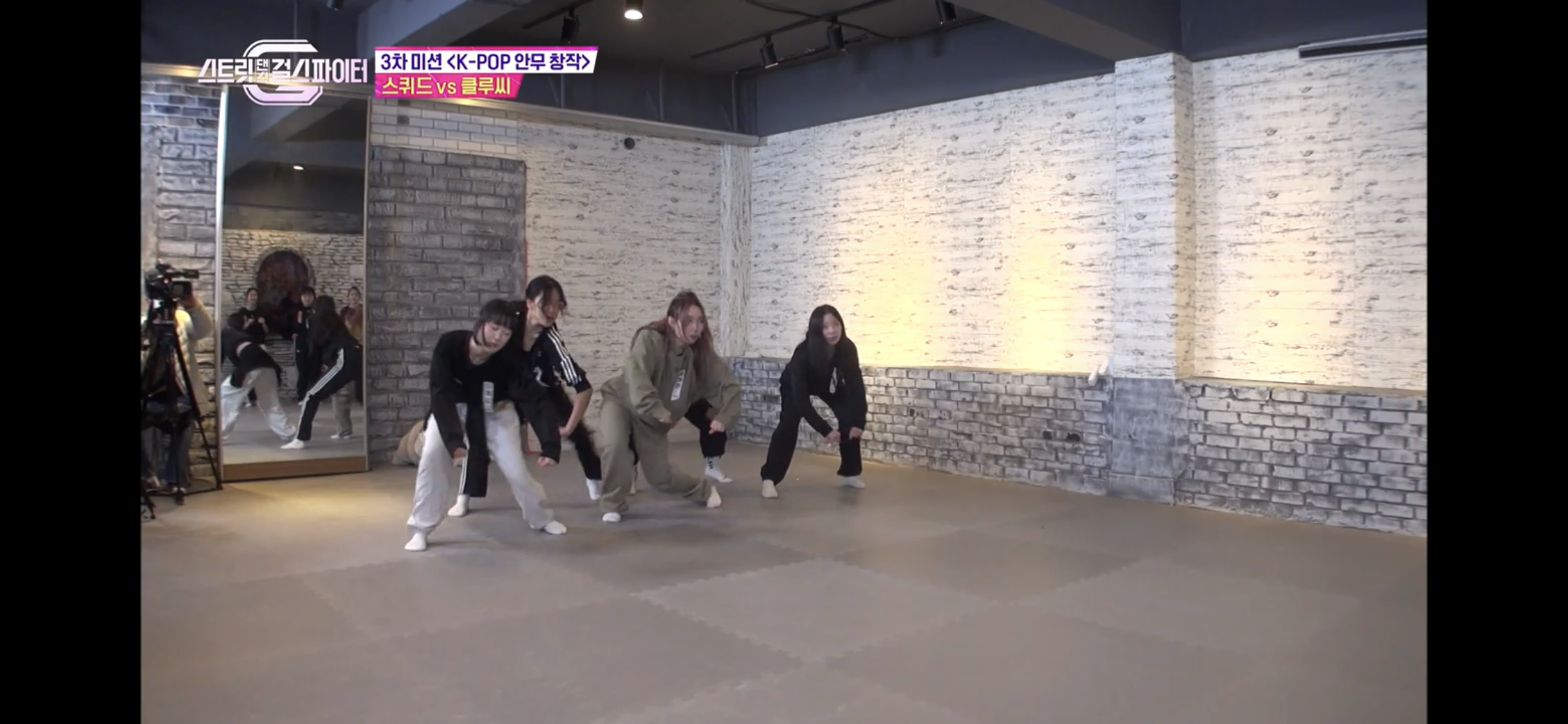 문제는 클루씨가 창작한 안무를 보여주면서 시작되었습니다. 스퀴드 크루는 클루씨 크루의 창작 안무를 보기 전, 평소 클루씨 크루가 잘 소화해냈던 왁킹과 락킹 위주로 안무를 창작했을 것이라고 예상했는데요.