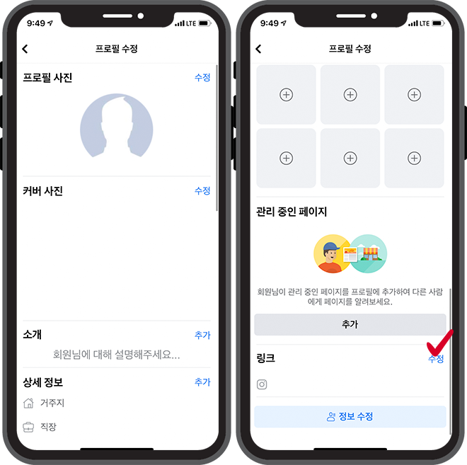 페이스북 프로필 페이지에 인스타그램, 트위터, 블로그 등