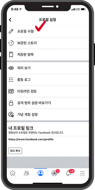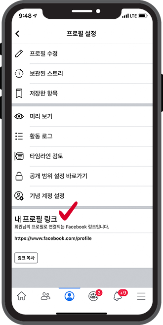 하단을 봐주시면 '내 프로필 링크' 라는 항목이 보이실텐데요.