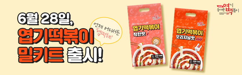 바로 어제인 6월 28일 동대문 엽기 떡볶이에서 '엽기떡볶이 밀키트'를 출시했다고 합니다! 맛은 착한 맛과 오리지널 맛 두 가지인데요. 엽기떡볶이 밀키트는 현재 '동대문 엽기떡볶이 전국 가맹점'에서 구매가 가능하며, 온라인 판매는 따로 알려진 것이 없습니다. 예상하기로서는 곧 온라인에서도 판매를 하지 않을까요?