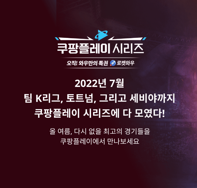 아쉽게도 이번 토트넘 내한 경기는 쿠팡플레이가 독점 중계하기 때문에, TV나 다른 OTT 서비스에서는 시청이 불가하다고 해요. 쿠팡 플레이는 평소에 쿠팡 로켓 와우를 이용하시는 분들만 이용이 가능한 OTT 서비스인데, 아직 한 번도 로켓 와우를 이용해 보지 않으신 분이라면 30일 무료 체험이 가능합니다.