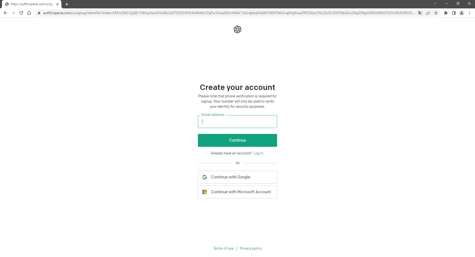 챗 GPT 홈페지에 처음 접속을 하면, 위와같이 로그인 또는 회원가입을 할 수 있는 화면이 나옵니다. 아이디가 있으신 분들은 바로 로그인을 하면 되고, 없으신 분들은 가지고 있는 이메일을 이용하여 쉽게 가입할 수 있습니다.
