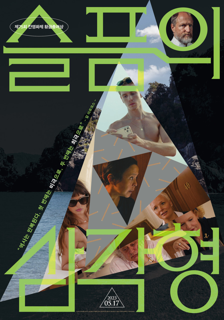'슬픔의 삼각형(Triangle of Sadness)'이라는 용어는 뷰티 업계에서 사용되는 용어라고 합니다. 미간의 주름을 만들지 말라는 뜻이라고 하네요. 스웨덴 어로는 '트러블 링클'이라고도 하는데, 인생에서 많은 어려움을 겪었다는 뜻으로 사용된다고. 한편으로는 자본주의를 뜻하기도 한다는데, 더 깊은 의미는 영화를 감상하고 나면 느낄 수 있을 것 같아요.