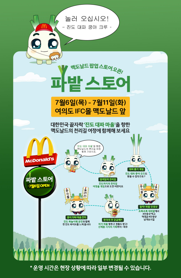 맥도날드는 지난 7월 6일 목요일부터, 다가오는 7월 11일 화요일까지 5일 동안 파밭 스토어를 운영한다고 합니다. 파밭 스토어의 위치는 여의도 IFC몰 맥도날드 앞이라고 하니 참고해 주세요.