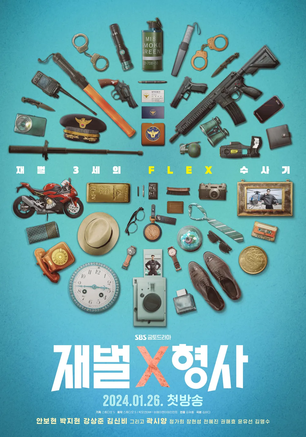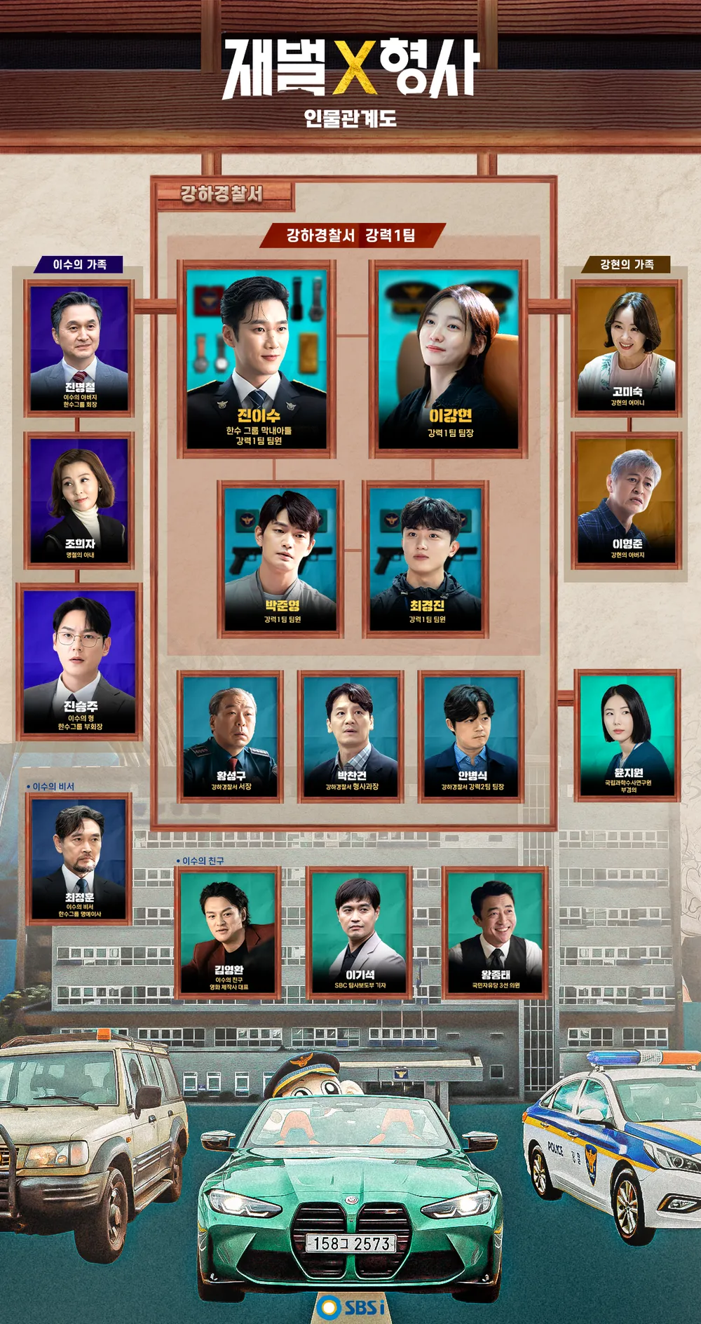 2024년 1월 26일부터 <마이 데몬> 후속으로 방영 중인 SBS 금토 드라마 신작 <재벌x형사> 입니다. 안보현, 박지현, 강상준, 김신비, 곽시양 배우가 출연하는 것으로 알려져 있으며 매주 금요일과 토요일, 오후 10시에 방송됩니다.