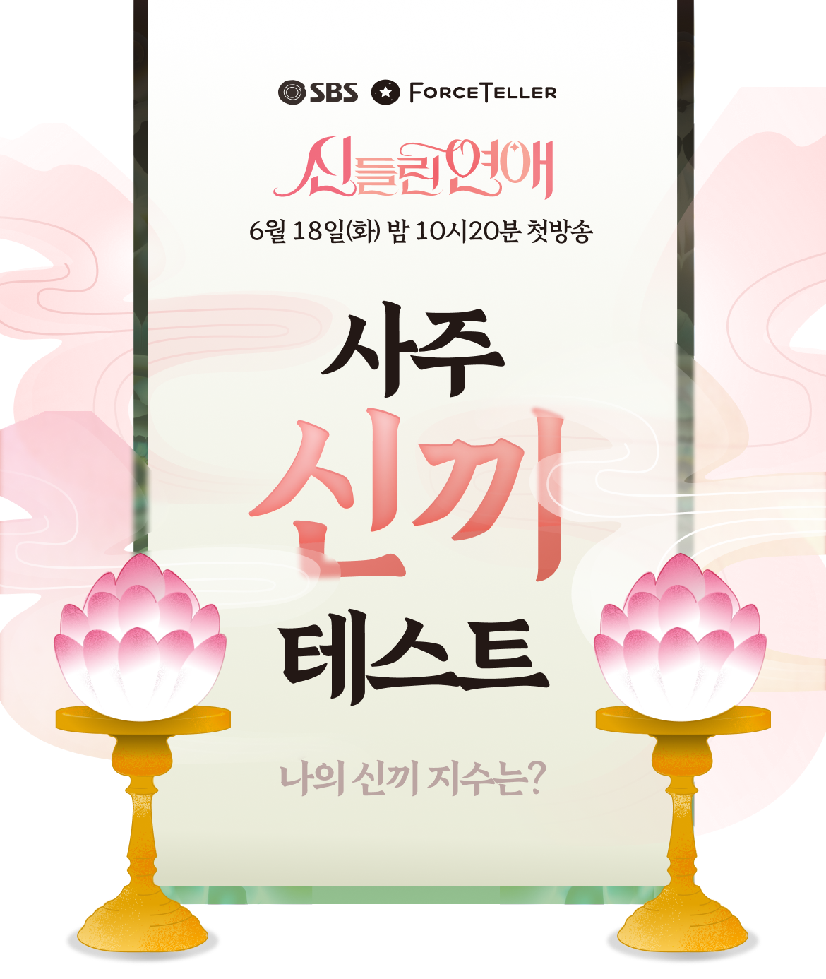 SBS 신들린 연애 공식 페이지를 들어가보면 신끼 테스트, 운명패 테스트(60 갑자 운명패 뽑기, 나의 일주 동물은?) 등 여러 가지 테스트가 준비되어 있습니다. 예능 신들린 연애에 흥미가 생기신 분들은 SBS 공식 홈페이지에 있는 테스트도 참여해 보세요.